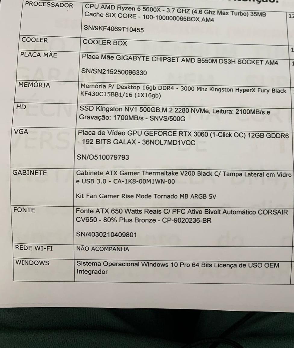• ​Ahhh... e fica um segredo entre eu e você: O Thiago ainda disse que a sugestão da loja não iria usar 100% do potencial do computador por falta de compatibilidade da proposta inicial feita...